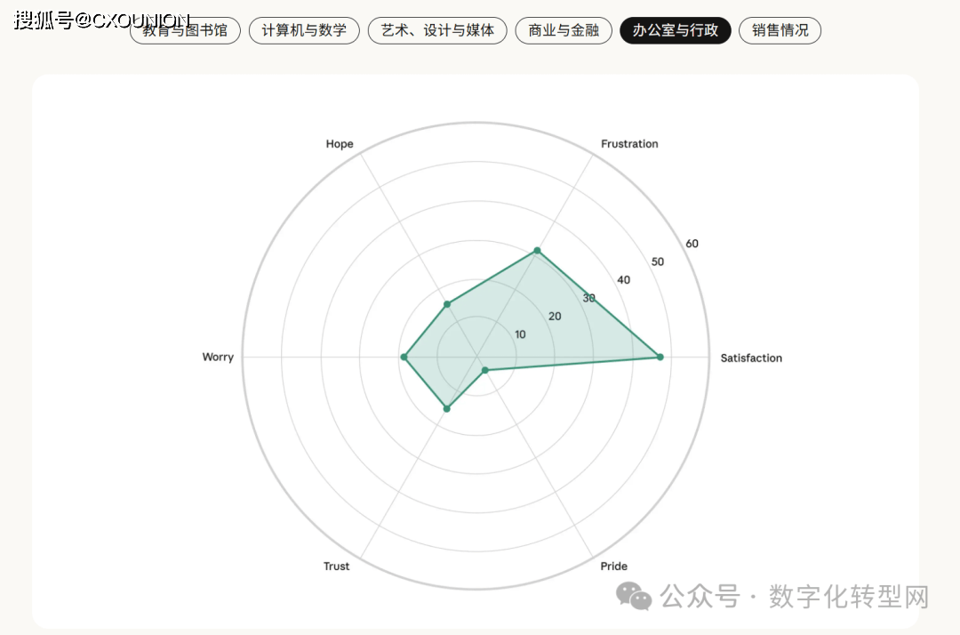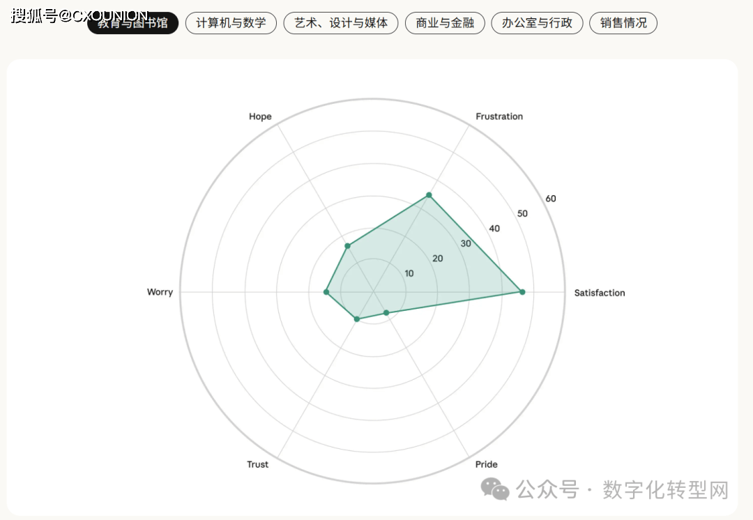 当AI采访了1250人,科学家巴望 AI 成为研究合做者,此中 25% 通过设定 AI 利用鸿沟(如教师亲身设想教案)焦点技术,害怕做品被认为 “太像 AI 生成” 而减弱原创价值。AI 正在代码开辟、平安调试、学术写做等方面的价值已获得普遍验证,AI 输出内容需要频频核查纠错,这种误差素质上反映了通俗职场人的矛盾心态 —— 他们身处高度依赖印象办理的组织,它看见了人类的“职业软肋”——CXOUNION