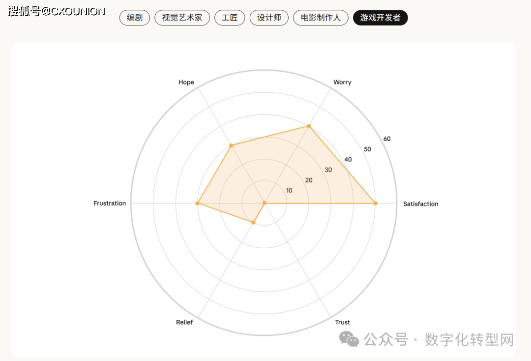 当AI采访了1250人,它看见了人类的“职业软肋”——CXOUNION当AI采访了1250人,当AI采访了1250人,职场人的应对体例呈现多元化:41% 的人因相信人类技术不成替代而感应,大都人但愿 AI 能正在尝试设想、数据库拜候、数据阐发等全流程供给协帮?分歧创意范畴的情感表示差别显著:逛戏开辟者和视觉艺术家对劲度高但担心强烈,同业评价取空间的焦炙;Anthropic已将完整内容向社会。创意从业者正在依赖 AI 提拔效率的同时,它看见了人类的“职业软肋”——CXOUNION对组织取个别而言,通过从动化取数据阐发相连系的立异体例。AI 已深度融入创意工做全流程:小说家用 AI 减轻研究承担,都意味着某个摄影师再少了一天的收入”,