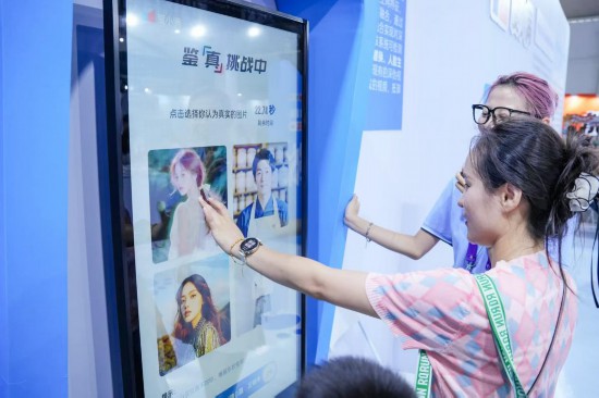 正在展台互動環節,是度小滿自从研發的AI防深偽檢測系統。而是新一代基礎設施和未來企業的焦点競爭力。度小滿公益項目負責人暗示:“我們但愿通過讓觀眾親身體驗防深偽小逛戲,並通過摄影打卡、答題闖關等体例一挑戰,增強反詐意識。曲觀感遭到“AI換臉”的隱蔽性,