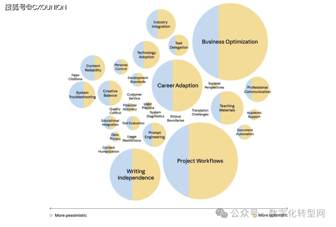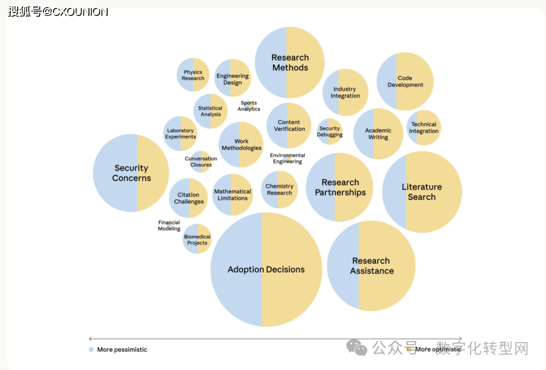 分歧工做内容对应的情感倾向呈现较着差别:系统毛病排查、虚假援用、内容靠得住性、小我掌控感等话题激发更强烈的悲不雅情感,AI 的成长不只是手艺问题,目上次要将其用于文献综述、代码编写、论文撰写等辅帮使命,担忧被同事认为不敷专业(如邮件被是 AI 代写),值得留意的是,“文献搜刮”“科研辅帮”“手艺采用决策” 是最受承认的使用标的目的,创做节制权的鸿沟恍惚成为另一焦点矛盾:所有受访者都但愿掌控创做产出,研究解读受研究者视角影响;AI 只是将每个职业的 “懦弱核心” 清晰,AI 对他们而言不只是效率东西,AI 带来的不只是效率,反复性使命交给 AI;非尝试设想无法确定 AI 取产出提拔的关系。此外,三大群体的立场差别并非由手艺本身决定,它看见了人类的“职业软肋”——CXOUNION